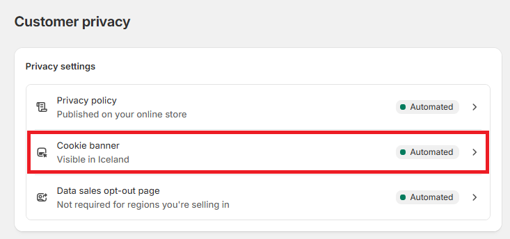 - Make sure Automatic Cookie Blocking is enabled in your CookieHub dashboard. This allows CookieHub to send consent events to Shopify’s Customer Privacy API automatically.