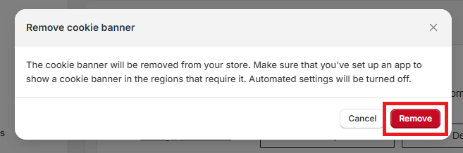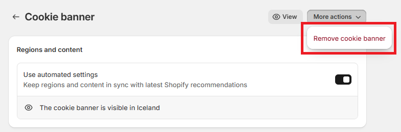 Click More actions → Remove cookie banner and confirm by clicking Remove.