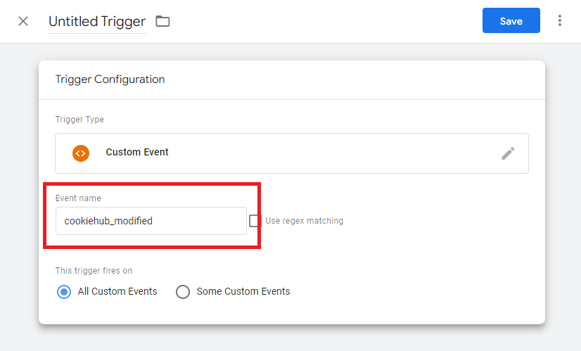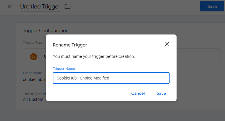 Name the trigger CookieHub – Choice Modified and click Save again.
